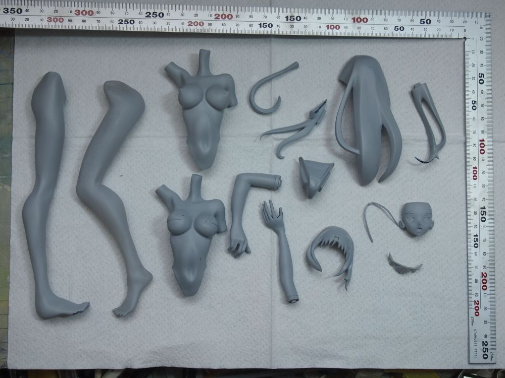 しかしながら画像真ん中上の数字の6みたいな髪の毛のパーツだけは量産を依頼する際に(コレは抜けないだろ…。)と思ってぶった切りました。位置決めはそれほど難しくはないと思うので…。
